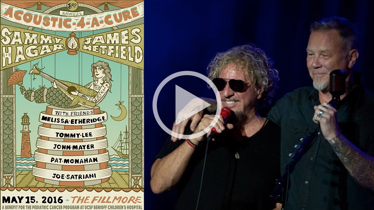 The 3rd Annual Acoustic-4-A-Cure concert benefiting the Pediatric Cancer Program at UCSF Benioff Children's Hospital. "Acoustic-4-A-Cure" returned to The Fillmore in San Francisco Sunday, May 15 with another star-studded lineup (in alphabetical order): Melissa Etheridge, Sammy Hagar, James Hetfield, Tommy Lee, John Mayer, Pat Monahan and Joe Satriani!