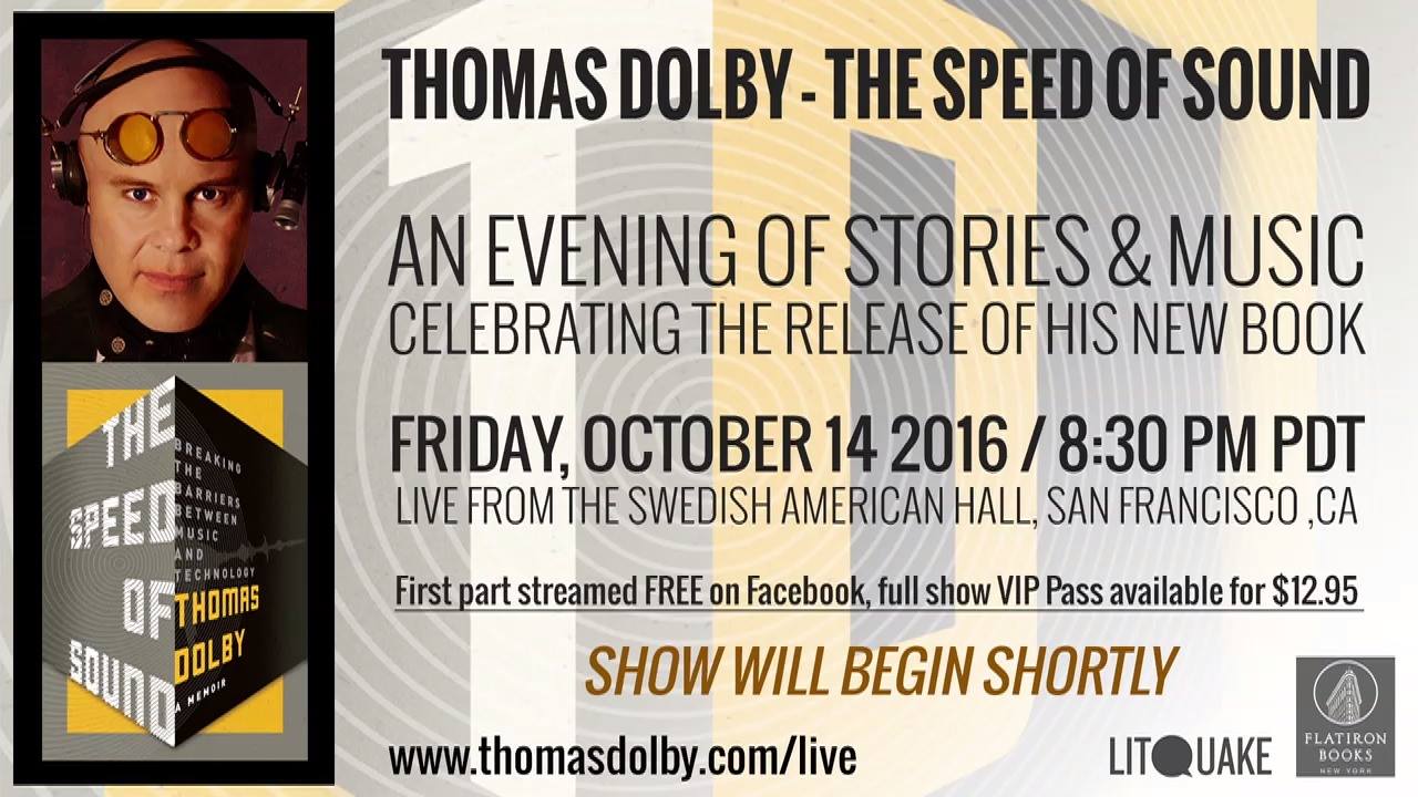 A live streaming event featuring an evening of stories & music celebrating the release of Thomas's new book "The Speed of Sound". It was a joy when Thomas called us to ask if we were "still doing webcasting" to help out with this very special launch of his brand new book. We last worked together on his return to the musical stage on "The Sole Inhabitant" and this time around it was both a bit of live music looping, but also reading of selections from his memoir, and a live Q&A with Kari Byron (Mythbusters).